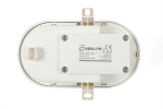 Wodoodporna, biała, owalna lampa kanałowa w plastikowej obudowie przykrytej matowym kloszem. Wyposażona w 14 diod LED o łącznej mocy 5,5W.